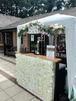 Fold out full stainless decked system. Draught, Drinks chiller, LED Gin Bar. Go anywhere! Design choices - The Classic Bar, The Blue Shabby Chic Bar, The Flower Bar, The Photo Bar (Design your own bar front +£129 printing fee). 3m x 3m. 1 power point required or generator.